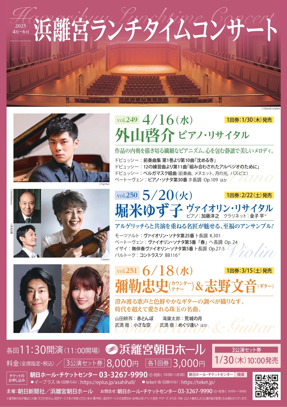 その他のお問い合わせ先:朝日ホール・チケットセンター 03-3267-9990(日・祝除く10:00-18:00)