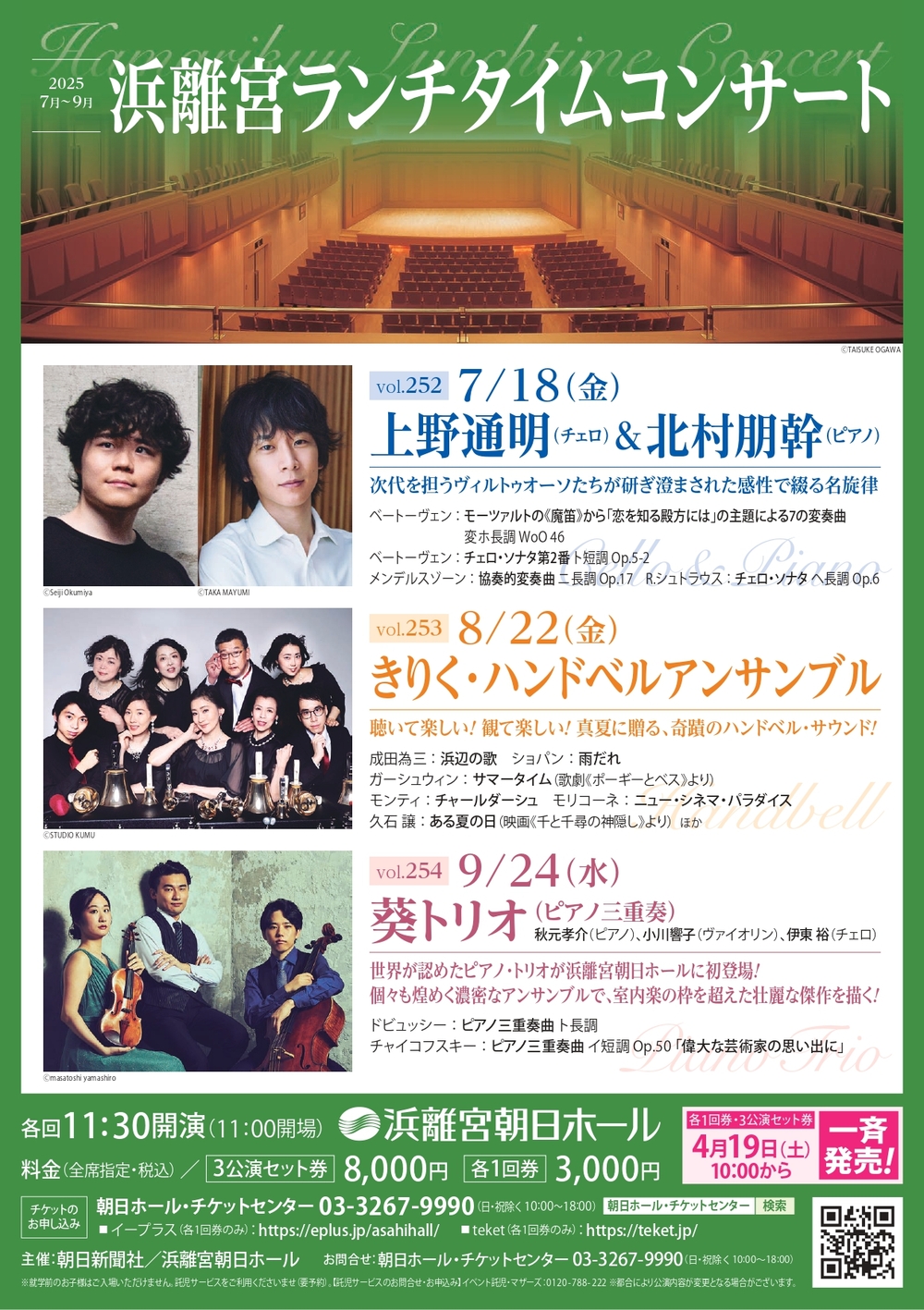 その他のお問い合わせ先:朝日ホール・チケットセンター 03-3267-9990(日・祝除く10:00-18:00)