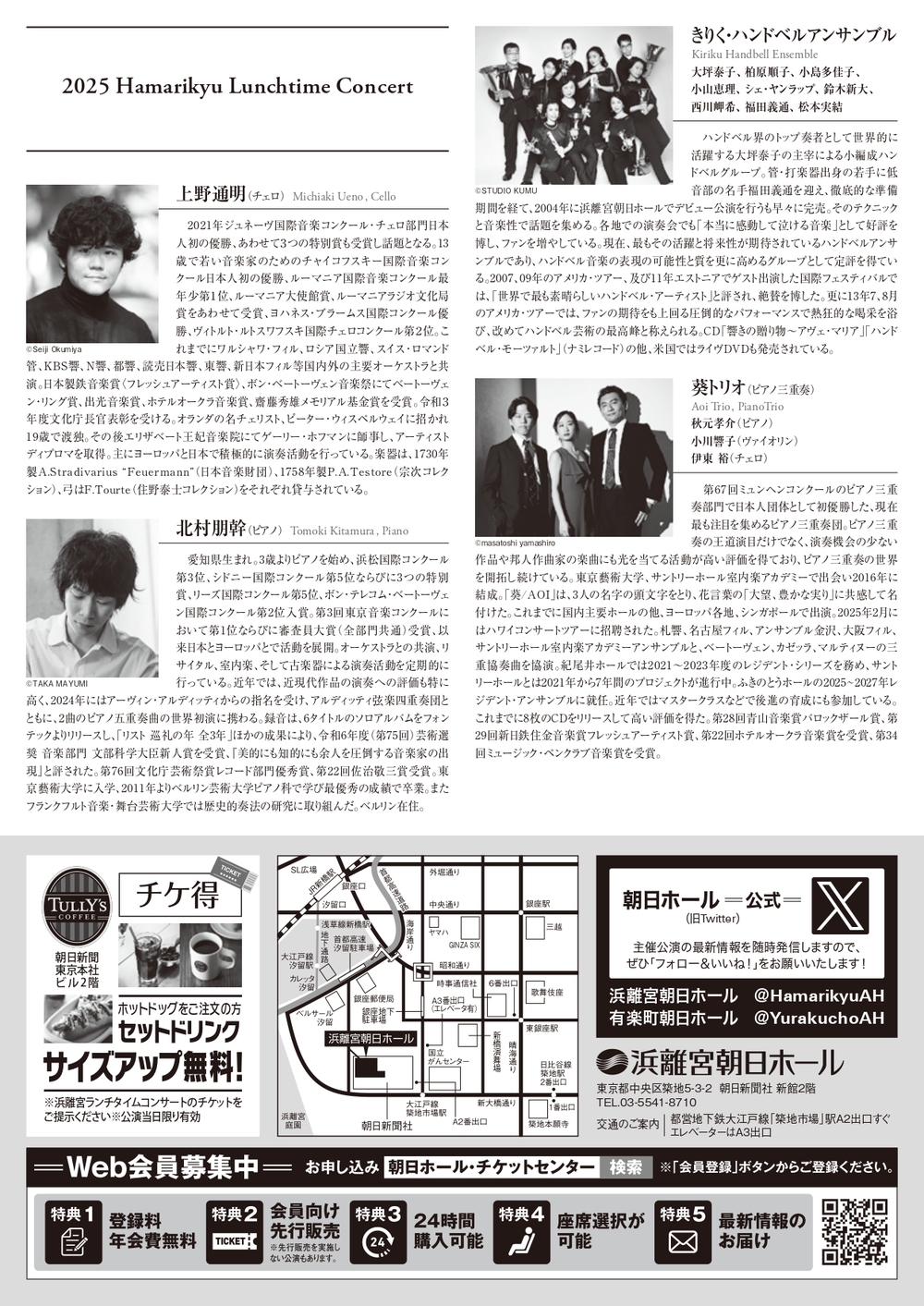 その他のお問い合わせ先:朝日ホール・チケットセンター 03-3267-9990(日・祝除く10:00-18:00)