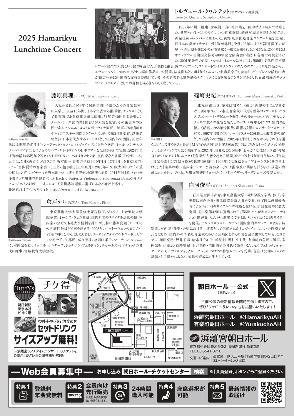 その他のお問い合わせ先:朝日ホール・チケットセンター 03-3267-9990(日・祝除く10:00-18:00)