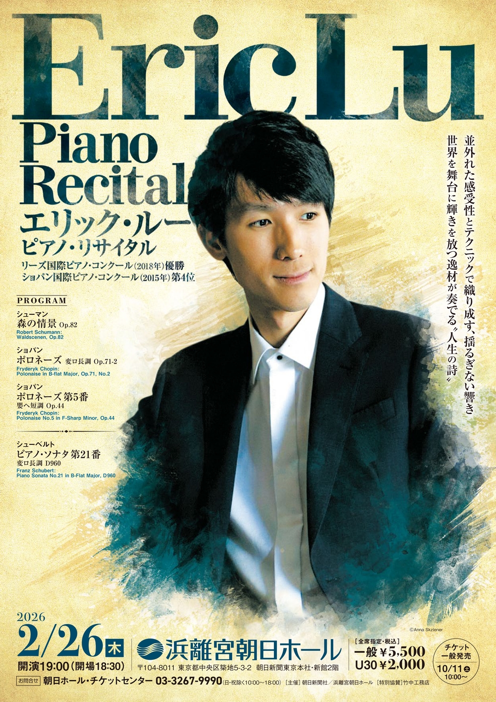 20歳でリーズ国際ピアノ・コンクールを制し、世界の注目を集めた俊英が浜離宮朝日ホールに初登場します。