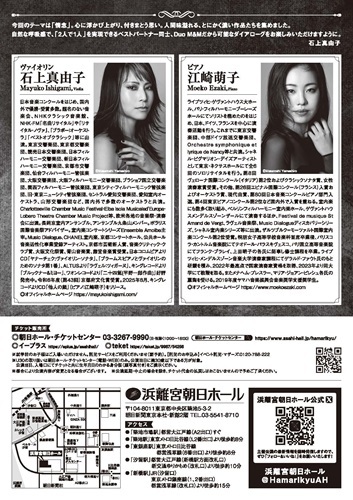 その他のお問い合わせ先:朝日ホール・チケットセンター 03-3267-9990(日・祝除く10:00-18:00)