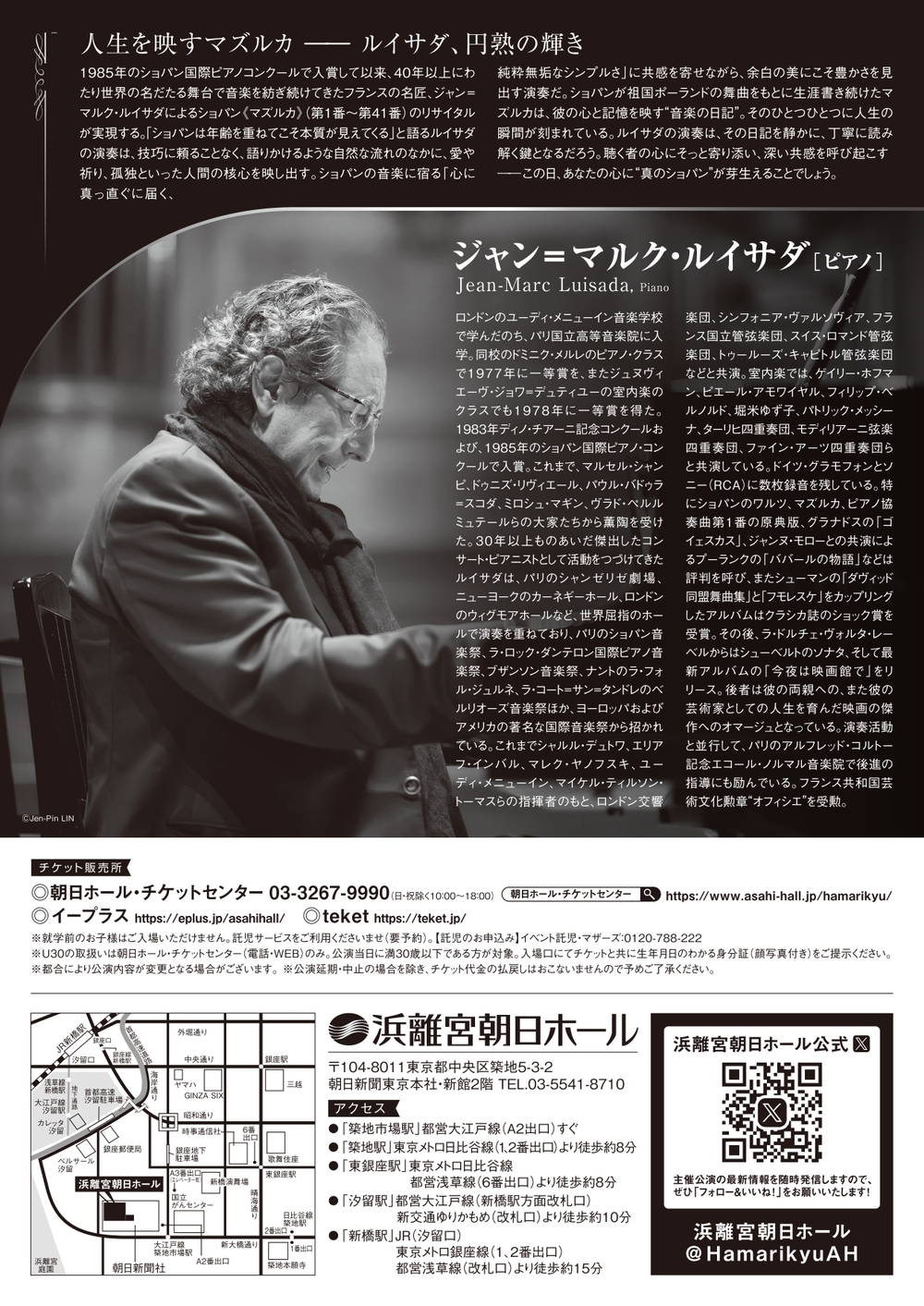 その他のお問い合わせ先:朝日ホール・チケットセンター 03-3267-9990(日・祝除く10:00-18:00)