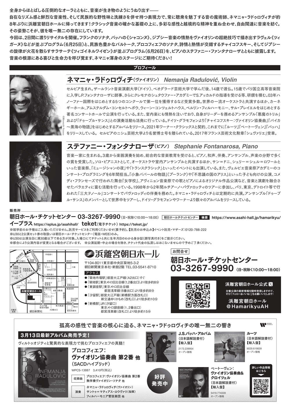 ネマニャ・ラドゥロヴィチ(ヴァイオリン)、ステファニー・フォンタナローザ(ピアノ)