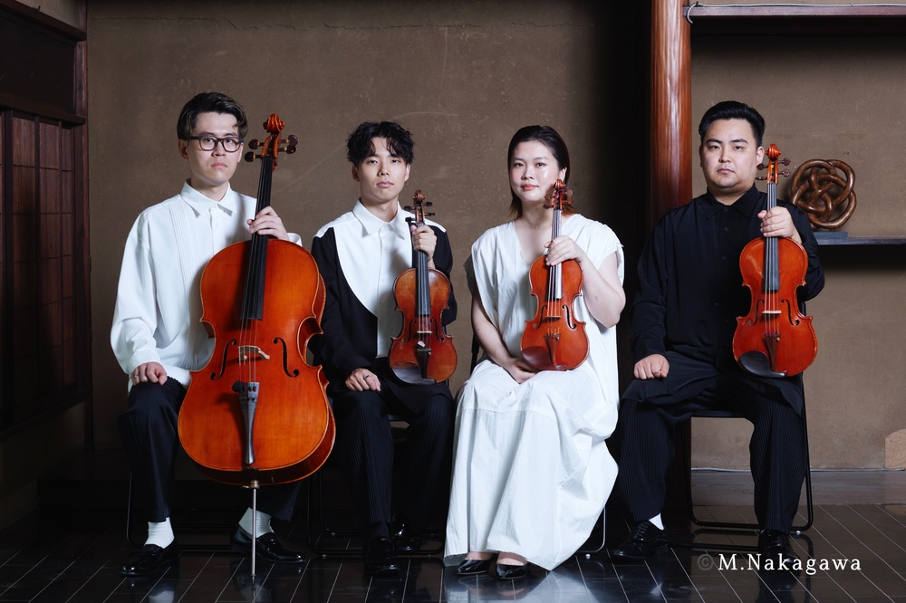 1st vn岸本萌乃加、2nd vn林周雅、Va長田健志、Vc蟹江慶行。2018結成秋吉台音楽コンクール室内楽部門第1位。宗次弦楽四重奏コンクール第3位及びハイドン賞。大阪国際室内楽コンクール第2位、コンクールアンバサダー受賞🏆