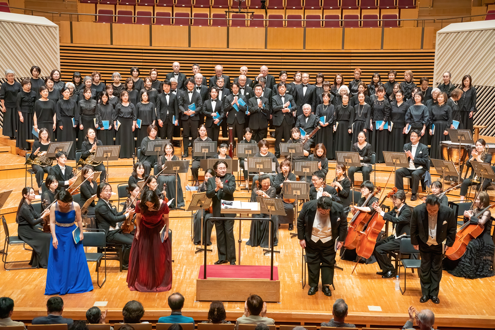 団の名前は、さらに高みに「羽ばたこう」という思いを込め、団員の投票で名付けました。演奏曲目や共演するソリストなど、合唱団に関わる重要なことは団員のアンケートや投票で決めています。定例日の練習のほか、合宿も行い、レベルアップとともに親睦を深めています。