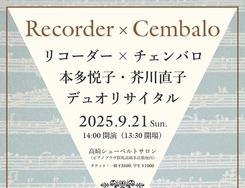 リコーダー×チェンバロ 本多悦子•芥川直子デュオリサイタル