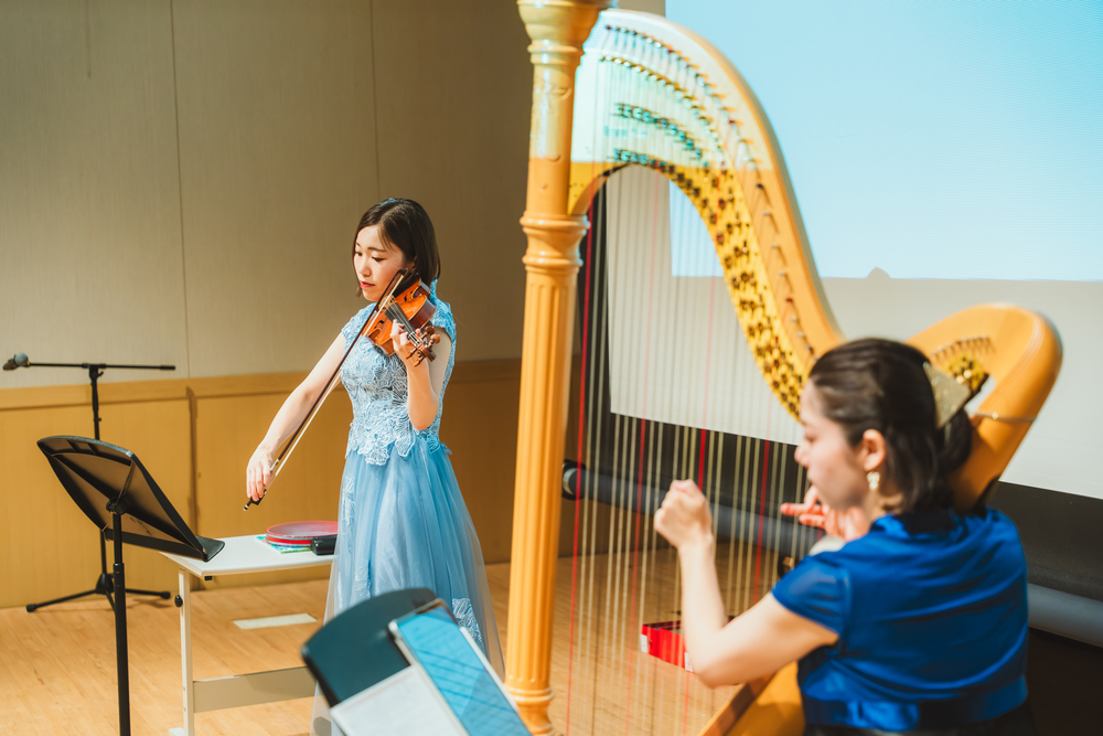 小さいお子様連れでも気軽に楽しめる演奏会を提供するヴァイオリン・ハープデュオユニット。