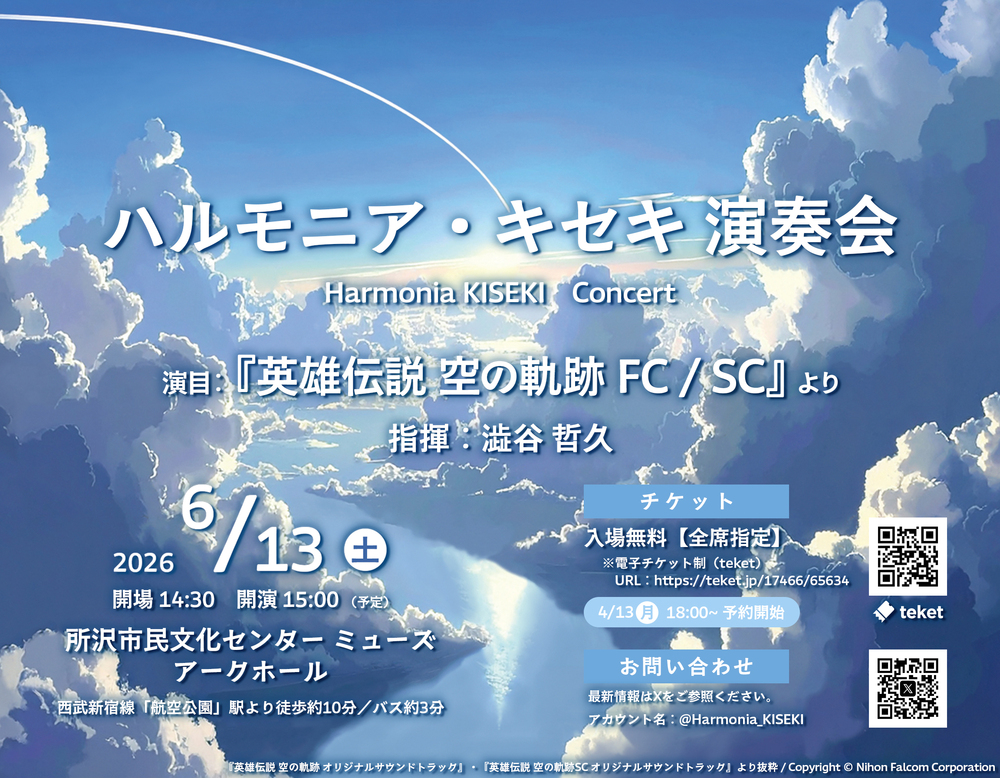 ※日本ファルコム様、及び各権利者様とは一切関係ございません。また、本演奏会は日本ファルコム様の指定のガイドラインに則って開催します。