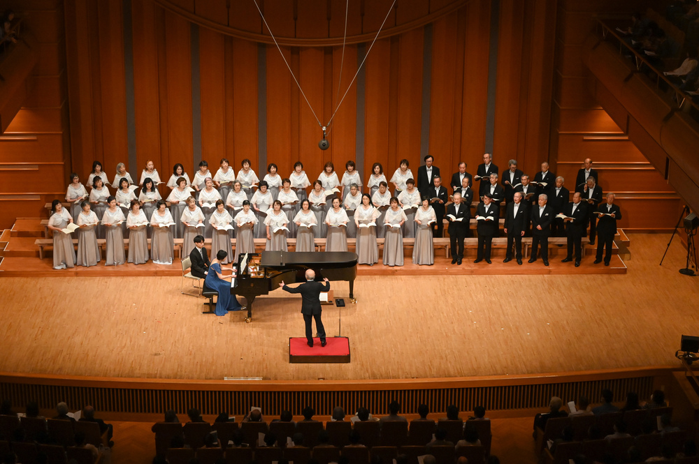 2011年5月にニューヨークで開催される「日米合唱祭」に参加すべく、作曲家・指揮者の岡﨑光治先生を中心として結成された合唱団。東日本大震災を乗り越えて実現した現地での演奏体験が原動力となり、その後国内3都市、海外6都市で公演を行うなど国際交流にも貢献して来た。2018年の岡﨑先生亡き後は、岡﨑先生と親交のあった池辺晋一郎先生を指揮者にお迎えし、岡﨑音楽に加えて池辺音楽の新しい世界を追い求めている。