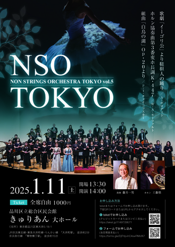 NSOはプロ奏者による「NSO Japan」を本隊としており、当楽団「NSO Tokyo」は、NSOの響きをより多くの音楽愛好家に体感してもらいたいと言う趣旨のもと2017年に結成されました。