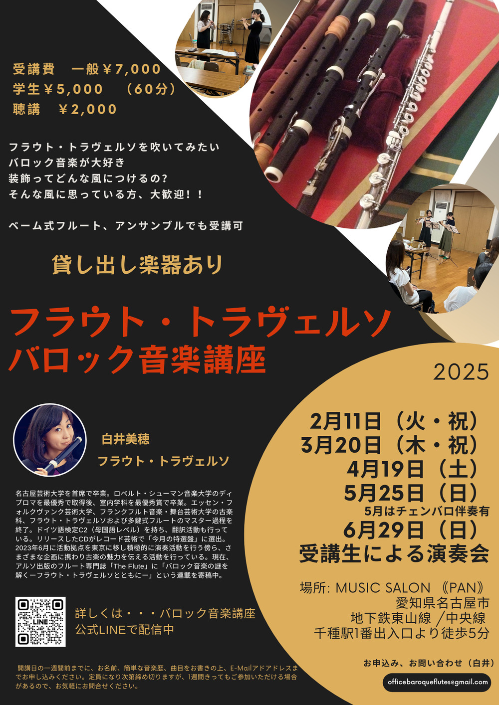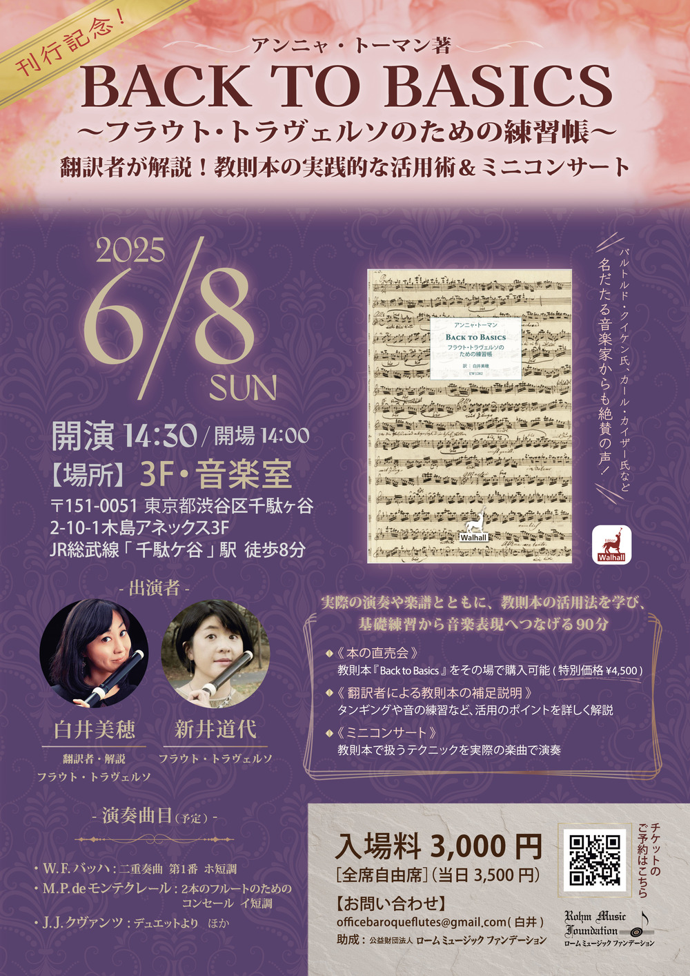 フラウト・トラヴェルソをはじめとする古楽器の演奏会、楽譜の出版・販売、歴史的解釈に基づく演奏法の研究や講習会などを企画・運営しています。