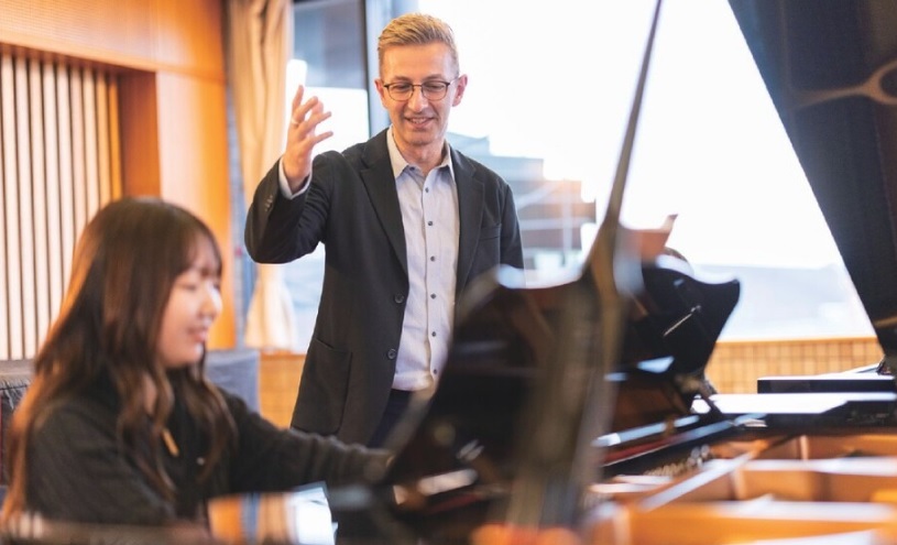同志社女子大学音楽学科では専門的な音楽の技能を磨く「演奏専攻」と、音楽を文化的側面から研究する「音楽文化専攻」を設置。幅広く社会に貢献できる能力を養います。