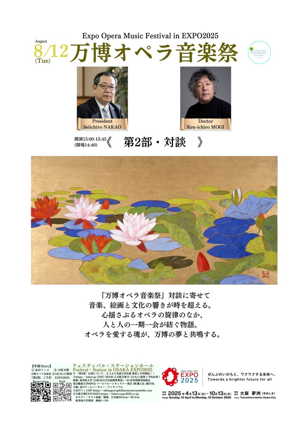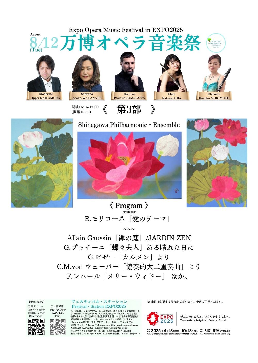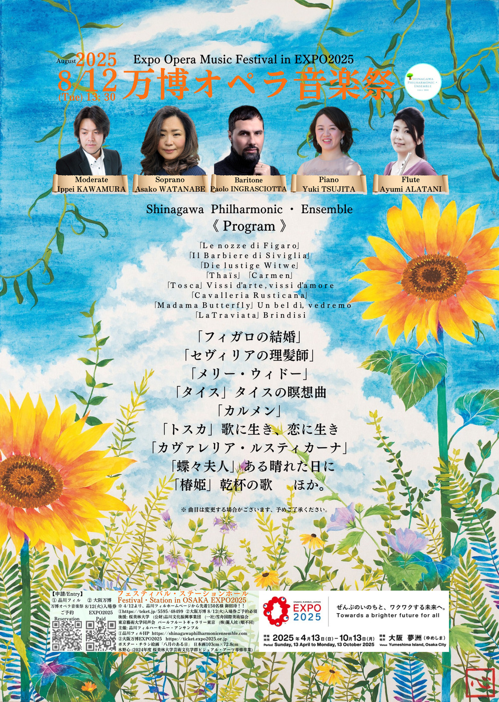 初代常任指揮 故 大野桂一郎氏初演、G.B.リゴン氏、樋本英一氏等招聘し好評博する。2015年ヴェネツィア国立音楽院フルート科教授F.ロッティ氏等招致。2020年指揮 河村逸平氏常任指揮に迎え好評博する。2021-23年品川区「わ ! しながわ地域応援プロジェクト」2021年文化庁「AFF」,「AFF2!」採択。2022年11月宮島 嚴島神社 国宝高舞台奉納公演出演。これまでにフルート、ヴァイオリン、ヴィオラ、チェロ、歌手、ギターとオーケストラ公演等、企画。2023年10月(公財)品川文化振興事業団共催 『スクエア荏原10周年記念事業』、10月箱根湯本 『富士屋ホテル50周年特別企画』2024年3月、(公財) 品川文化振興事業団主催きゅりあん大ホール『愛しの映画音楽』開催。フランス、イッシー音楽院よりオリンピック関連事業に招致される。世界遺産モン・サン・ミシェル島内、パリマドレーヌ寺院開催。2025年8月、15周年記念事業サントリーホール(小)『真夏の祭典』、大阪万博EXPO2025フェスティバル・ステーション『万博オペラ音楽祭』開催予定!