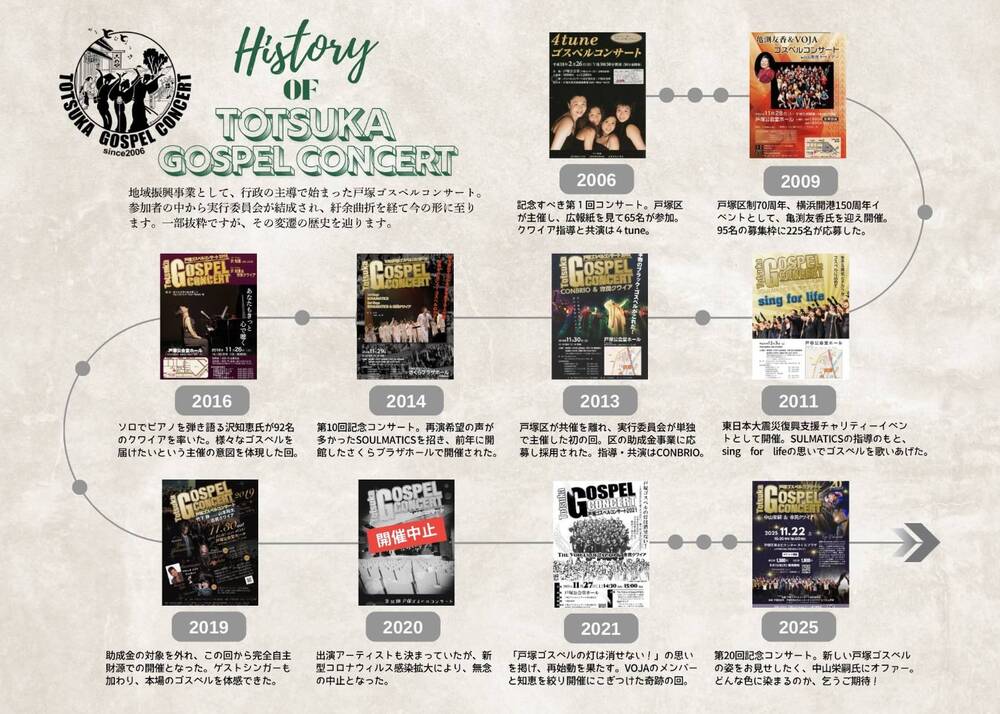 横浜市戸塚区で100名の公募した市民クワイアがプロのゴスペルシンガーの指導を受けて毎年コンサートを開催しています。今年は20回のアニバーサリーコンサートです。