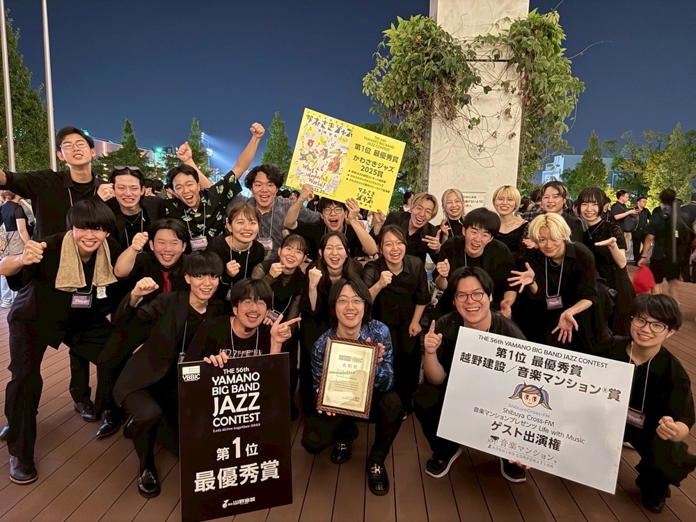 青学唯一のビッグバンドサークルです。幅広い大学、学年のメンバーからなり、ファンクやフュージョンを中心に様々なジャンルの音楽を演奏しています。月に1.2回程度対バンやイベントでの演奏の機会があり、大会への出場や関東以外の地域へ遠征しての演奏、また夏と春の合宿なども行っています。2025年度は夏の大会であるYBBJC(山野ビッグバンドジャズコンテスト)にて、優勝をし、創部以来初である2連覇を達成することができました。